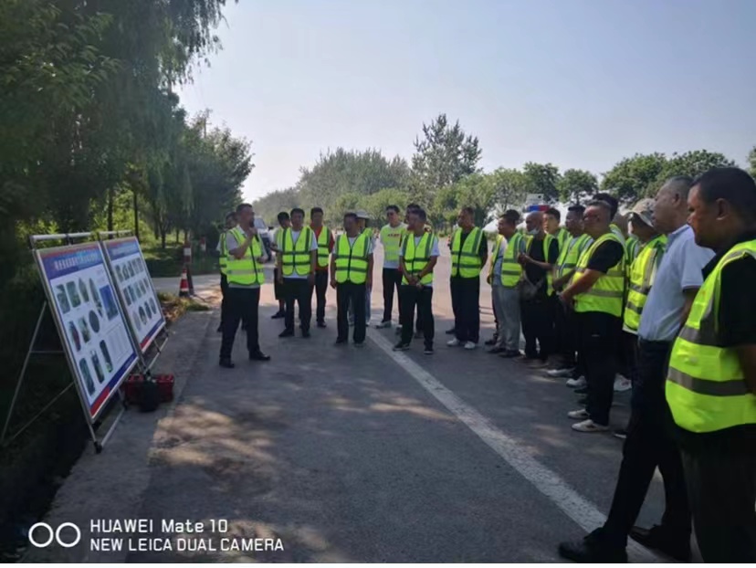 最后,李智勇總工程師介紹了咸陽市地方道路今年的預防性養(yǎng)護中積極推廣精細化碎石表處技術,借助8月10日市農村公路事業(yè)服務中心組織全市縣區(qū)交通運輸局及農村公路管理單位在我公司淳化縣G211潤鎮(zhèn)段精細化碎石表處施工現場召開現場交流會的契機,希望各分公司、拌合站立即行動起來,利用當前的大好時機,檢查和調整改性乳化瀝青生產設備,做好各項準備工作,組織試生產,發(fā)揮公司技術設備優(yōu)勢,主動聯系各縣區(qū)地方道路管理部門,搶抓機遇,開拓市場,占領市場,為咸陽市農村公路發(fā)展貢獻公司力量。